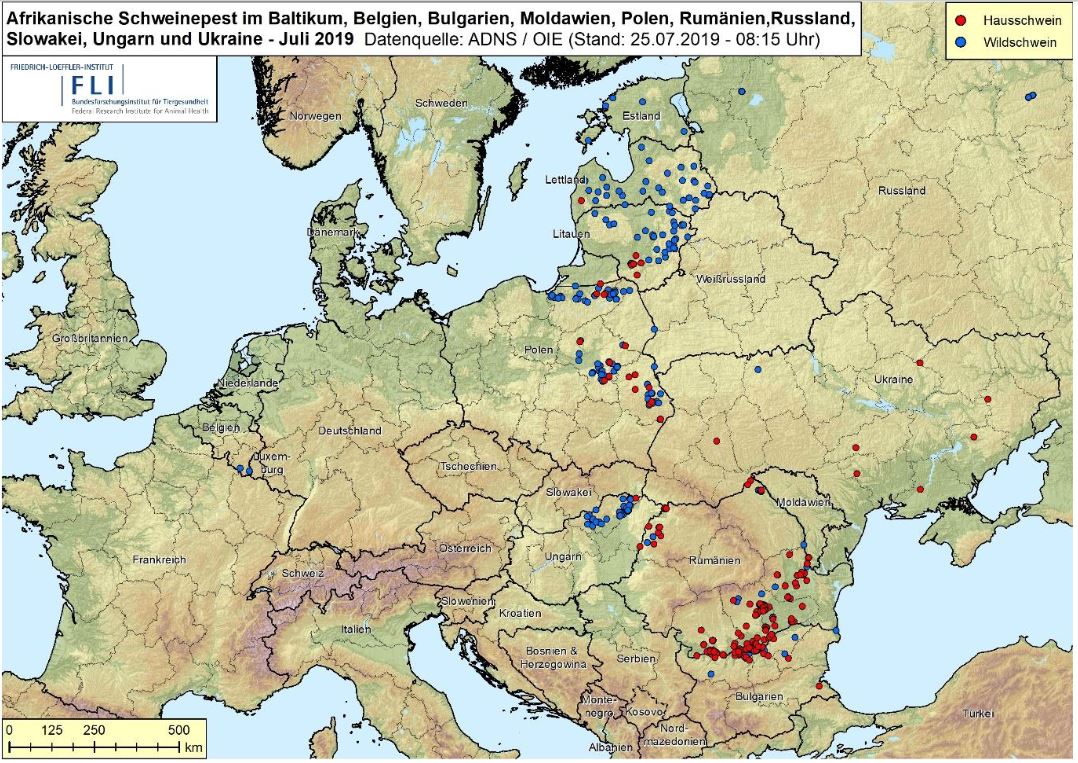 Damit ist nun das zehnte europäische Land von der Tierseuche betroffen. Nach Angaben des Tierseuchenmeldesystems (ADNS) hat es in der Europäischen Union einschließlich der Ukraine von Januar bis einschließlich 21. Juli insgesamt 495 ASP-Ausbrüche in Hausschweinebeständen gegeben. Hinzu kommen 3 554 Fälle bei Wildschweinen.
