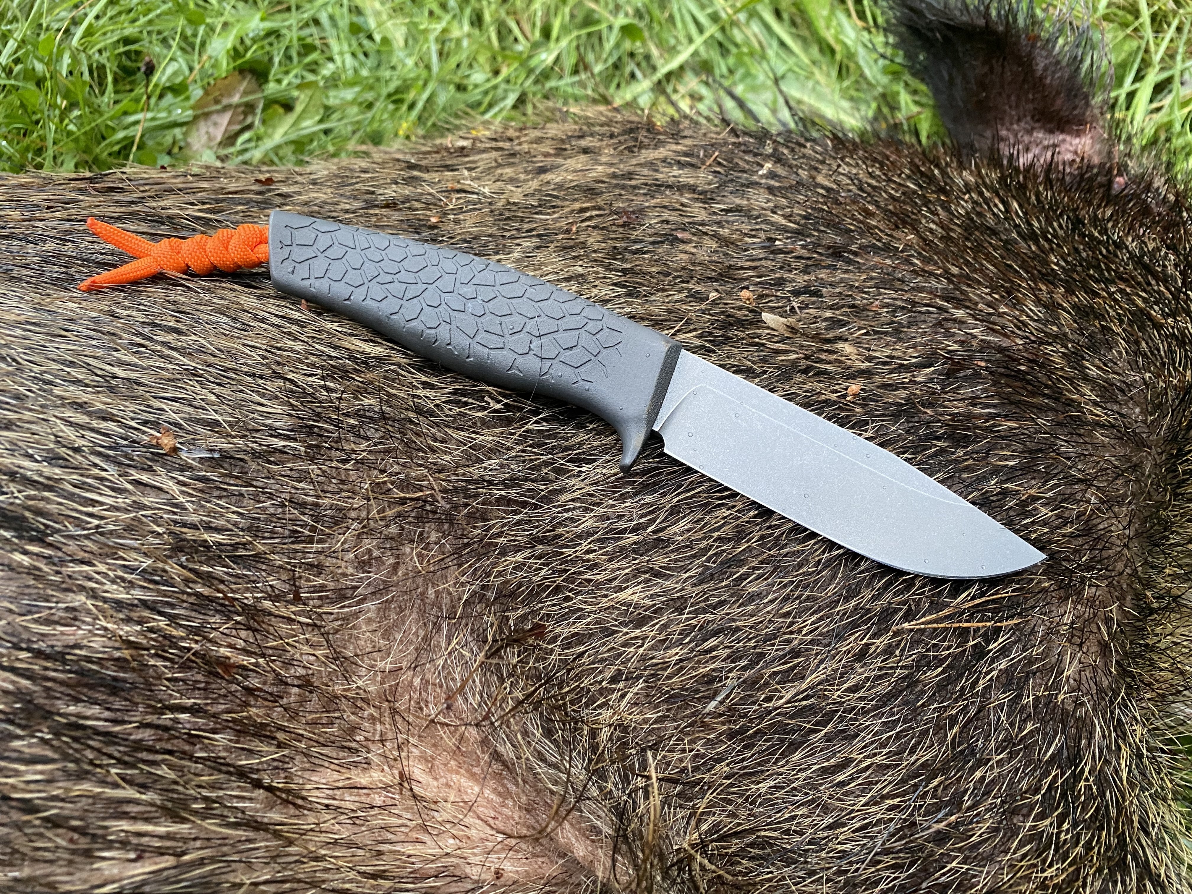 Wir waren gespannt, wie sich der 80 g-Winzling im Alltag bewähren würde. Im Revier verrichtete das RWJ-Testmesser alle Arbeiten problemlos und erwies sich als robust und korrosionsbeständig. Natürlich darf man eine so auf höchste Schneidfähigkeit ausgelegte und maximal gehärtete Klinge nur für Schneidarbeiten, also nie zum Hebeln oder Stemmen verwenden. Die Schnitthaltigkeit ist enorm, selbst nach 10 Rehen und Sauen war die Klinge immer noch ausreichend scharf für normale Arbeiten. Man sollte sie aber dennoch regelmäßig nachschärfen – deutlich weniger Aufwand als eine wirklich stumpfe MagnaCut-Klinge wieder zu schärfen.