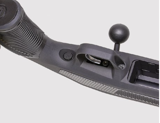 Das Kastenmagazin komplett aus Kunststoff nimmt fünf Standardpatronen auf. Der Auslöser liegt etwas versenkt vor dem Magazinschacht in der Schaftunterseite. Das Magazin steht unter Federdruck und springt heraus, wenn man den Auslöser drückt. Der Direktabzug lässt sich über eine von außen zugängliche Schraube verstellen, die Testwaffe löste bei 680 g trocken und ohne fühlbaren Vorweg aus – für eine Waffe dieser Preisklasse ein toller Abzug.
