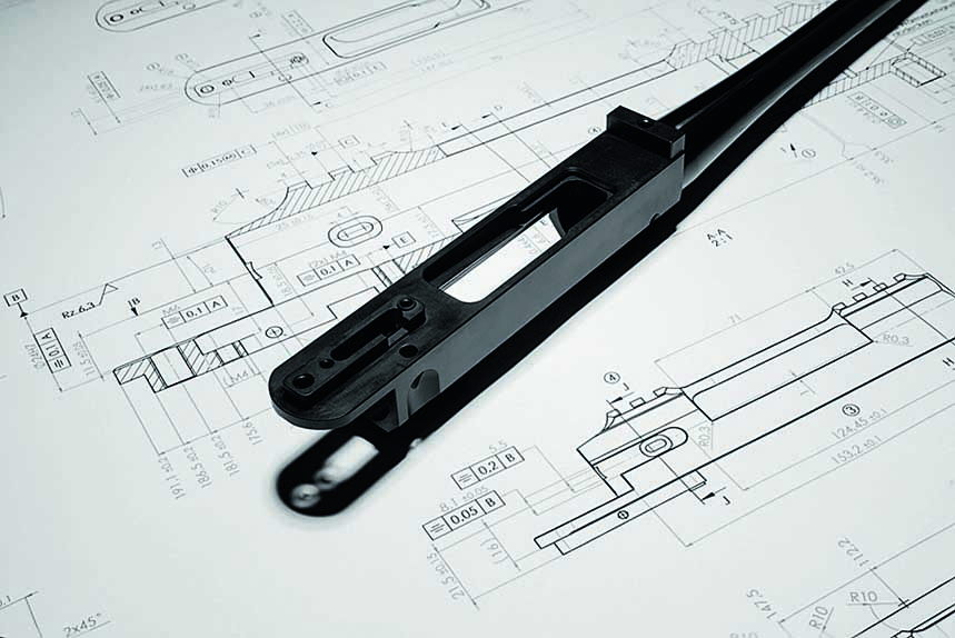 Das System ist aus einem massiven Stahlblock gearbeitet und hat eine flache Unterseite. Das hat Vorteile bei der Systembettung im Schaft. Die Oberseite mit Picatinny-Schiene ermöglicht preiswerte Zielfernrohrmontagen.